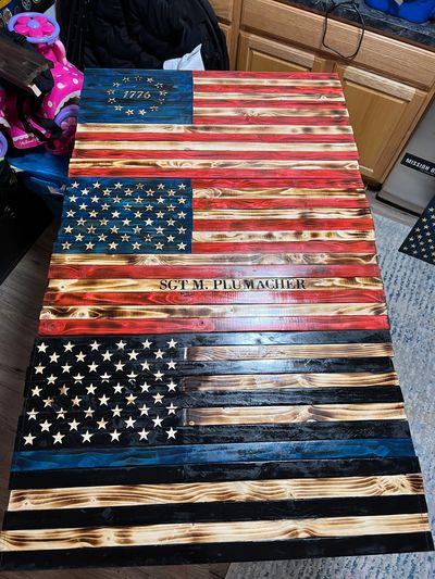 Explore customized handmade gifts for military and First Responders, crafted with care using woodworking and laser engraving.